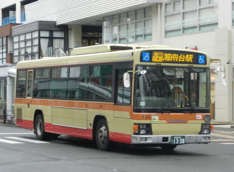 ▲まずは単車を。「臨時」などの貼り紙は掲出されず、行先表示も通常の定期便と全く同じなので臨時バスだとわかりにくいのですが、車内が混雑している様子を見ると入試臨だとわかりました。とらえたのは復路となります。こちらは湘23系統の臨時便で、一般のお客様も乗車できます。