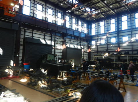▲一番の楽しみは工場棟内見学。行先表示の展示や操作体験のほか、車体移動の実演もあり内容が濃かったです。特に車両の床下機器は、車体が上がった状態でないと見られない角度からも存分に見ることができました。